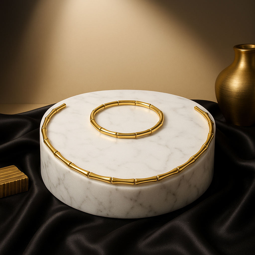 Chunky Bamboo Chain Jewelry Set | Waterproof Anti-Tarnish Gold Necklace & Bracelet