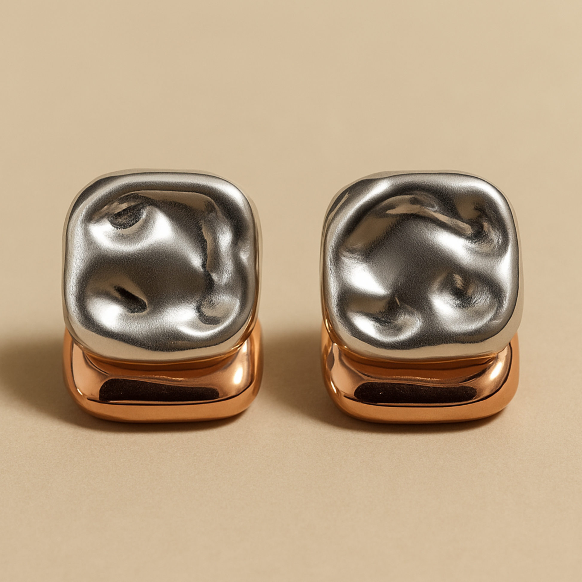 Elevate your everyday style with our Metamorphosis Sculptural Studs, a captivating blend of modern artistry and two-tone elegance. These unique organic shape earrings feature a striking contrast of polished silver-toned and warm gold-toned metals, creating a dynamic, abstract design that makes a sophisticated statement. Perfect for the contemporary woman seeking chunky yet compact stud earrings, their sculptural form adds an elevated artistic flair to any ensemble, from casual chic to evening wear. Discover the beauty of mixed metal jewelry and embrace a design that's both bold and effortlessly wearable. These modern stud earrings are lightweight and designed for comfort, ensuring you can showcase your unique style all day long. Keywords: two-tone earrings, sculptural studs, organic shape jewelry, modern abstract earrings, mixed metal, statement earrings, contemporary studs.